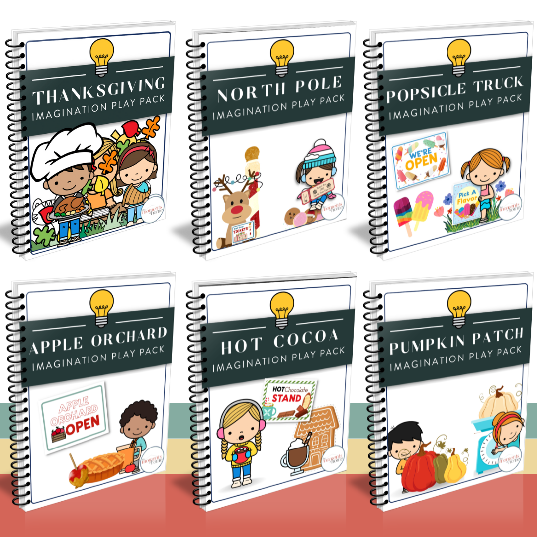 Give your little ones a magical way to embrace the seasons with the Seasonal Imagination Play Pack Bundle! This 154-page bundle includes six unique, seasonal-themed play packs that aren’t available anywhere else. From running an apple orchard to serving hot cocoa at the North Pole, your child will enjoy hours of creative, hands-on pretend play—all while building their next adventure or business right before your eyes.